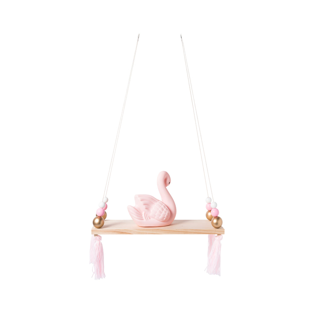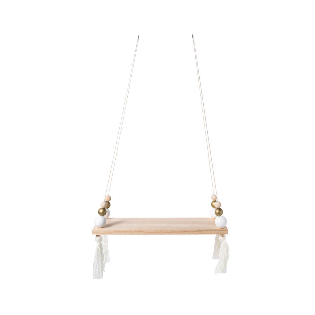 solid wood wall shelf with round beads tassel