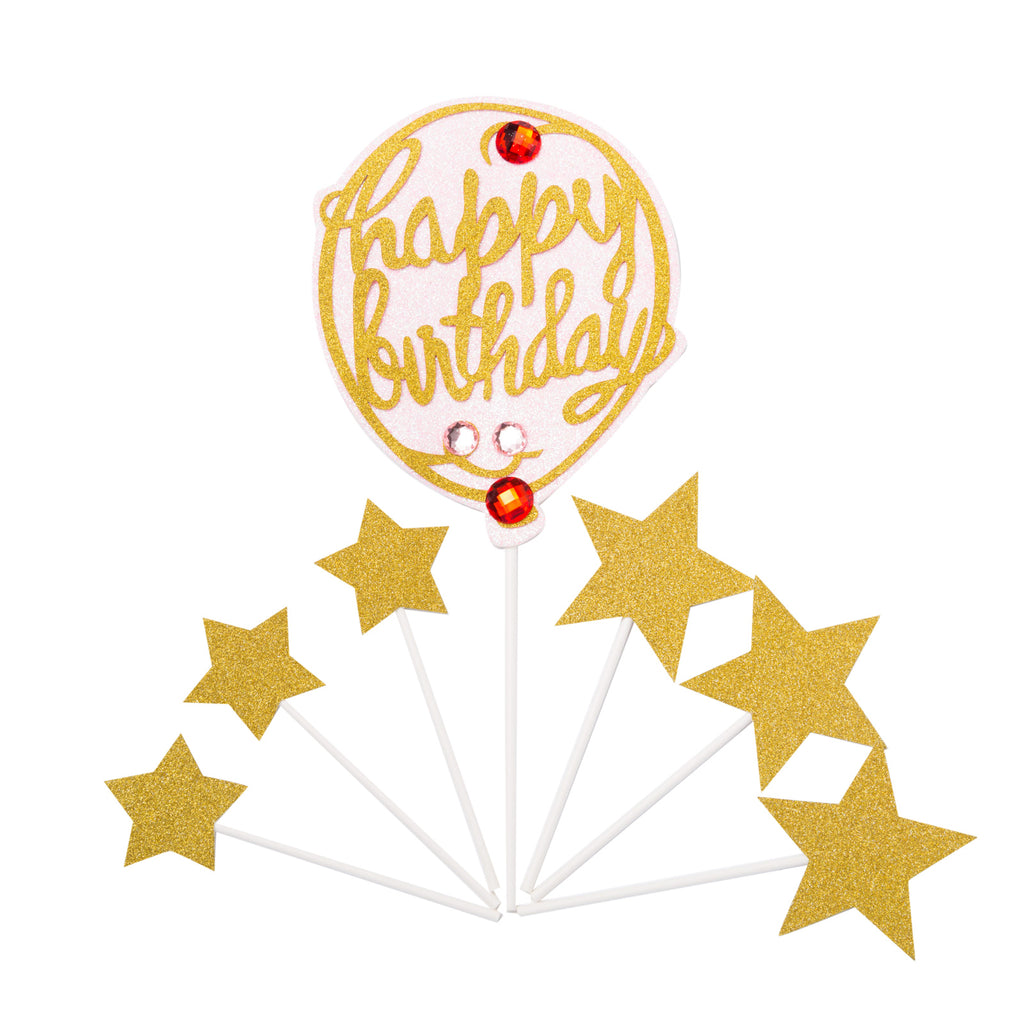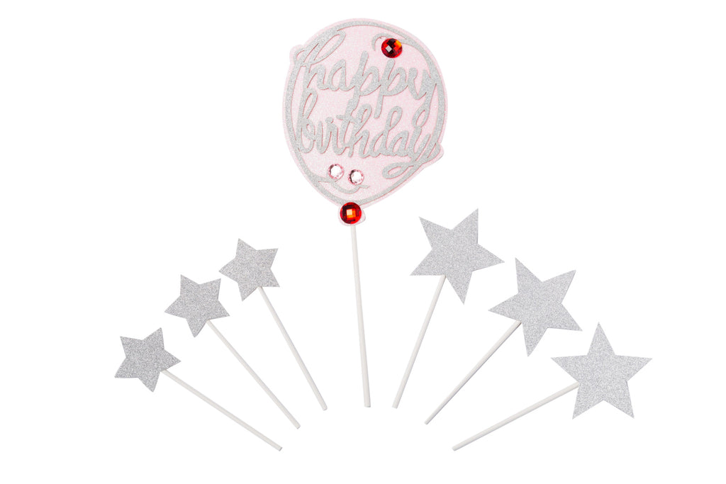 Jewelled Balloon with stars happy birthday set
