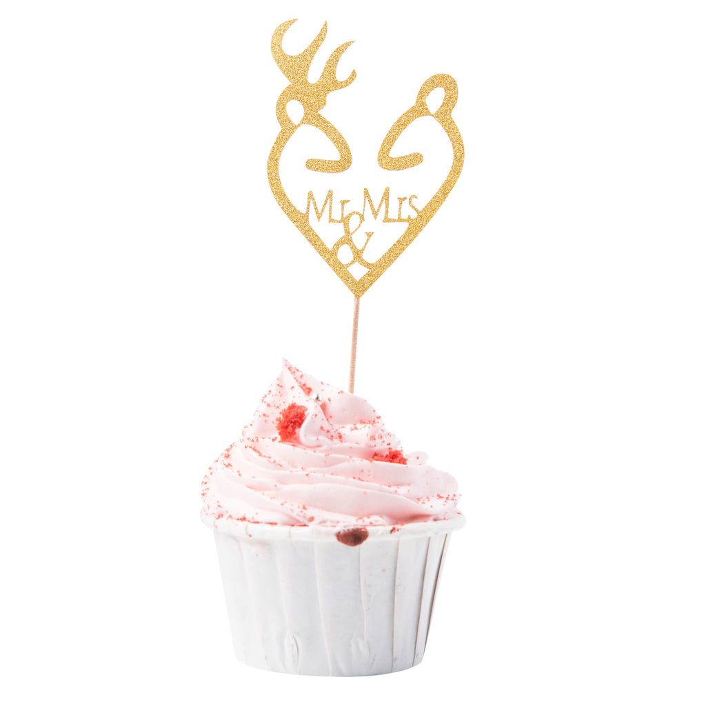 Open Heart Shape Mr Mrs Cupcake Toppers