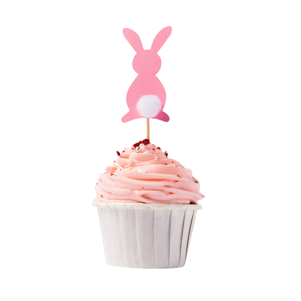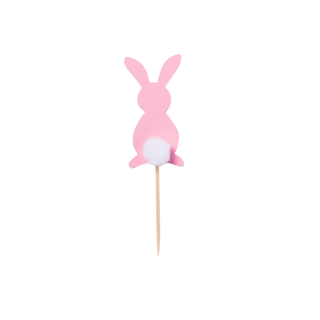 Pink bunny cupcake toppers with furry tail 5/pc