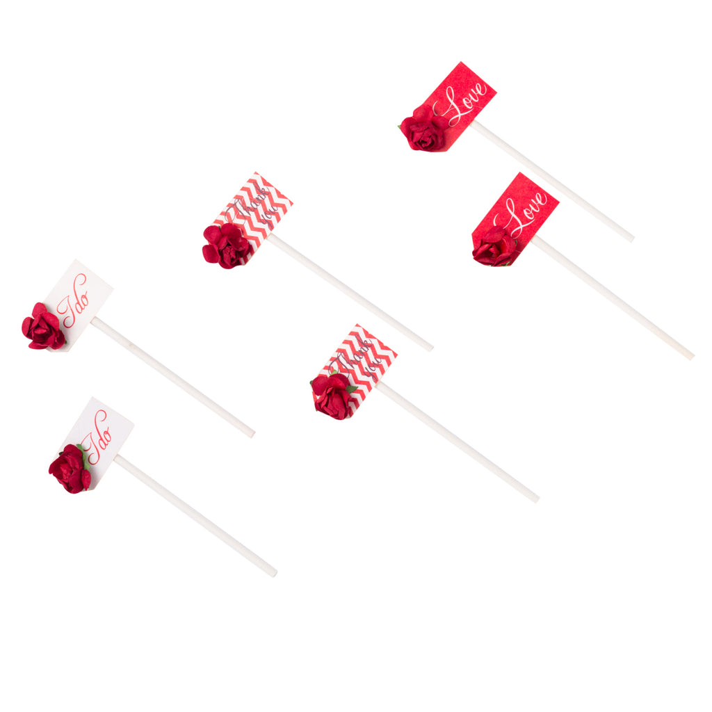 Wedding Engagement red rose I do cupcake topper 6/pc